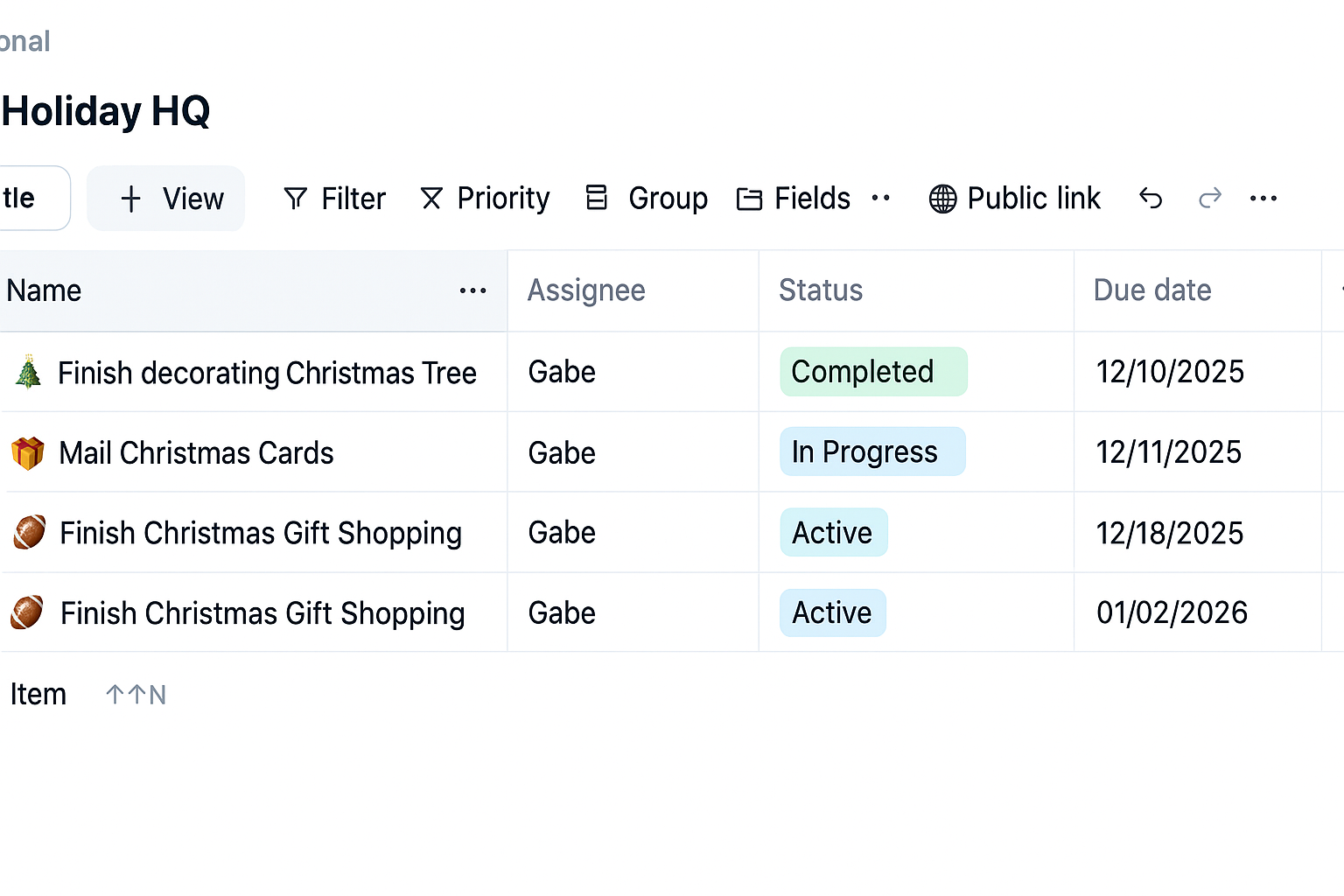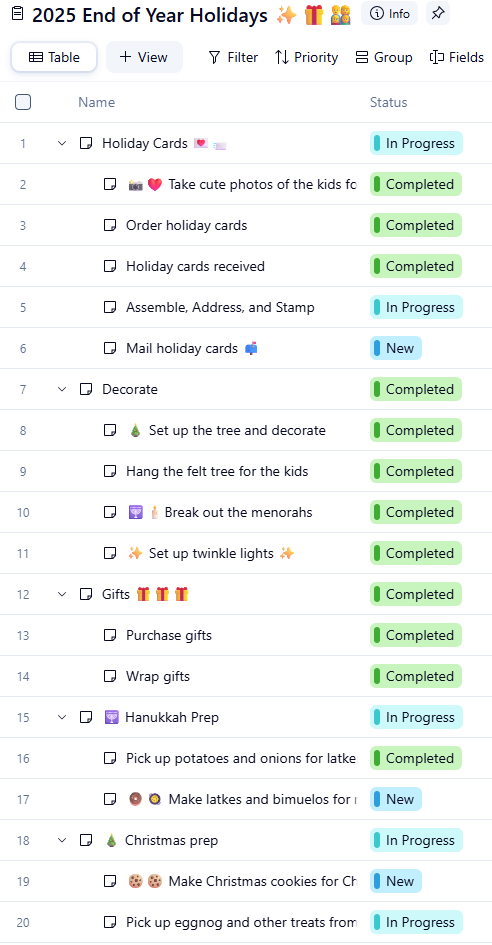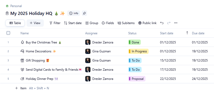 - Add at least three tasks for your holiday goals or activities (for example: โDecorate the house,โ โSend cards,โ or โBake cookiesโ).