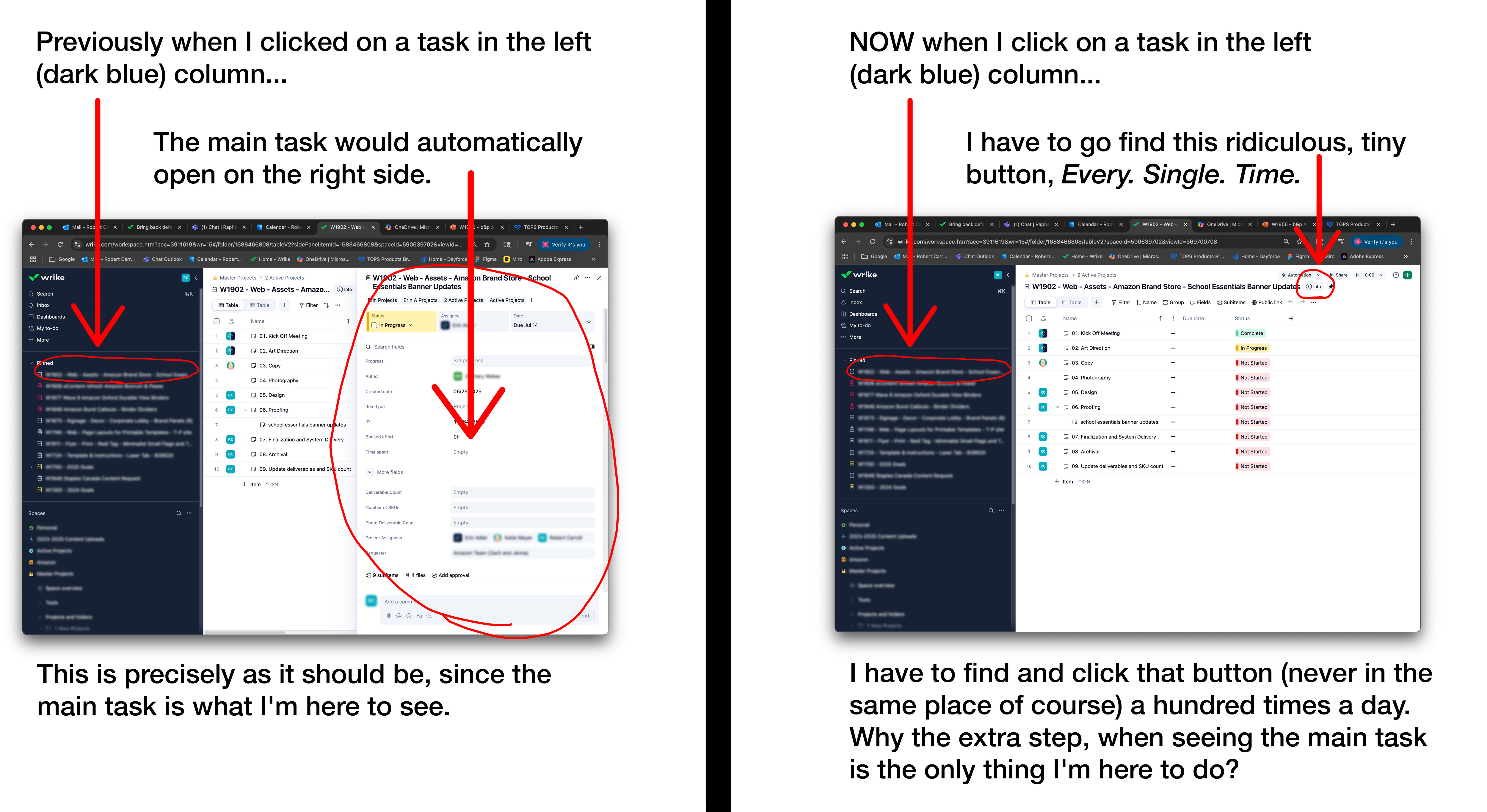 CLEARLY we want to actually see the task. That's why we clicked on it. Why do I now have to click twice? This is just one more annoying step in an already annoying interface.