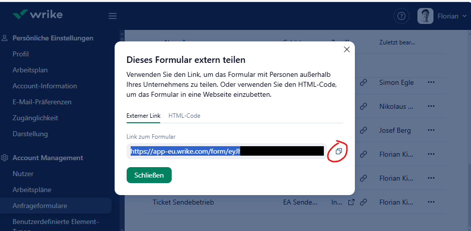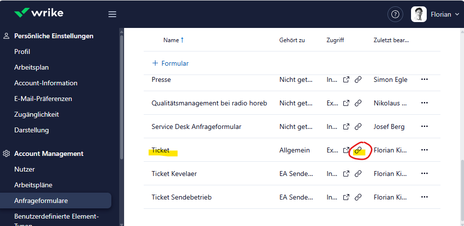 there are many other possibilities for the use of request forms, not only tickets. Tha's why the name "Request" is mor accurate. But if you're only using a special Ticket request form (as we also do), you / a wrike admin could create a link to this request form an add it as a space bookmark, for example.