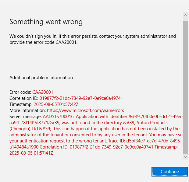 AADSTS90044: National Cloud Request Process Switched off.