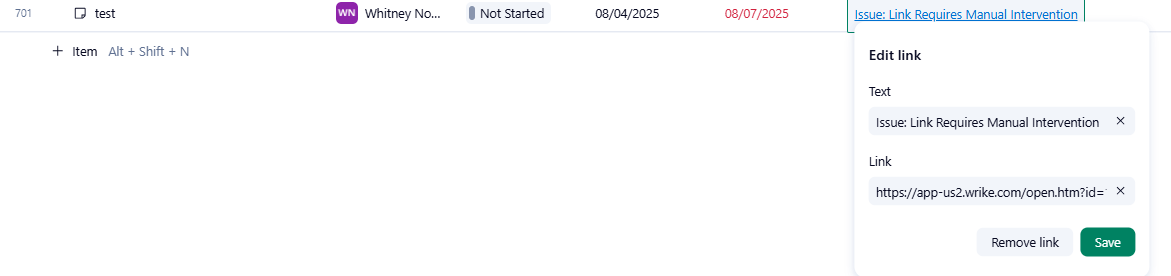 One specific use case is RAID items - I want to be able to indicate which project deliverable is held up by which RAID item. Right now I have to add links and manually rename them. It looks like this:
