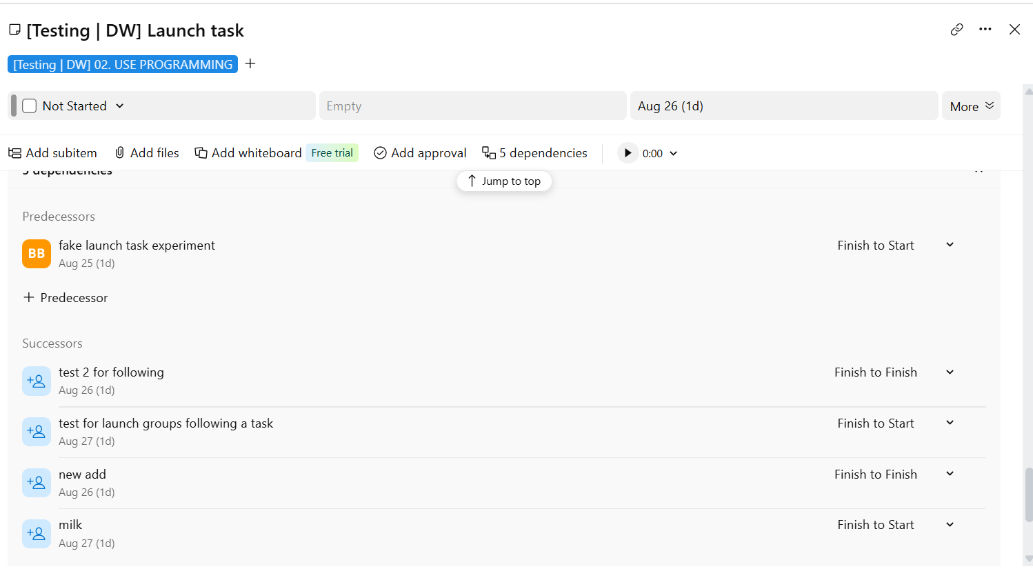 Additionally, I am providing a screenshot of one of our dependencies to show that if you look to see what is a predecessor or successor, you can see the date, but can't see the status to know it was completed or not, without having to hit the task link. That means if you wanted to check all that is dependent to see the status, you would have to go back and forth many times, sometimes there are 14 dependencies connected to one task.