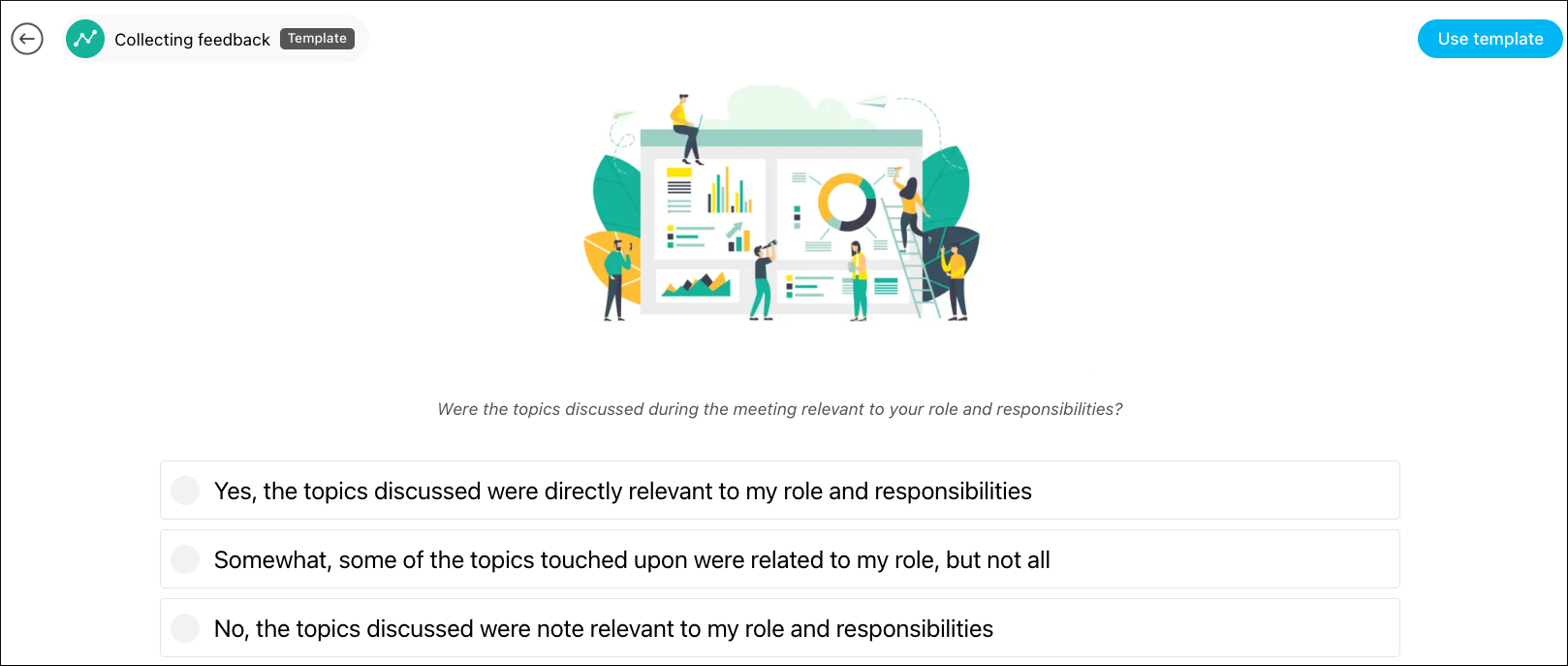 Survey: Perfect for getting quick feedback via ratings (stars), votes or MCQs.