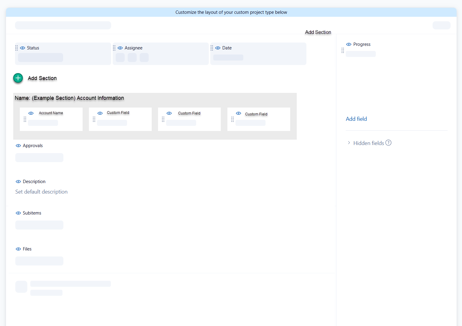 Proposal to enhance Custom Item Types by introducing structured sections for organizing Custom Fields. This would improve clarity and usability, especially for Custom Item Types containing 20+ Custom Fields, resulting in a cleaner and more efficient project or task view. A rough layout example is included below for reference.
