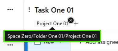 Here is an example of what the user will see when they hover their mouse over the tag of a task when the space, folder, and project (the full pathway) have all been shared with them: