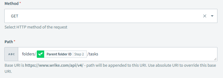 Step 2 - Get the task information from Wrike (including all custom field values) from task ID in step 1.