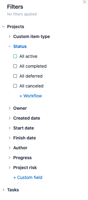 Hey, any update on the ability to hide projects with 'Complete' statuses from list views? The list view is basically useless for me without this, as there is no way to filter down to only the active tasks and projects.ย