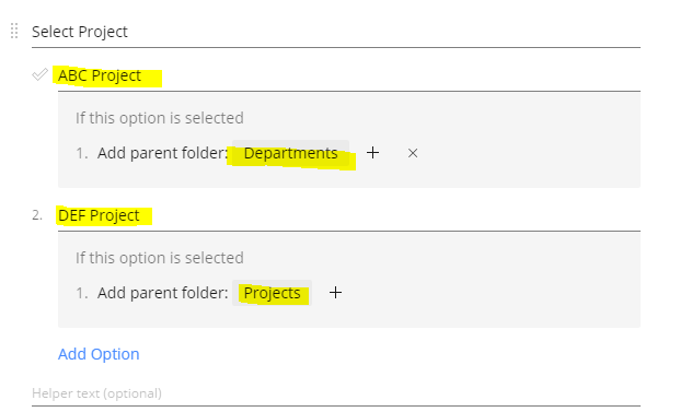 I saw this blog post, and was looking at request form number 2 which I'd like to implement. I tried adding a related project tab there, but I would like ot have one further feature which would be to select a subfolder with a relative bath in the "when user submits form" option.