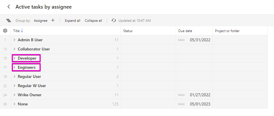Job Roles were not previously shown when grouping by โAssigneesโ, therefore, they have never been a separate grouping option.ย