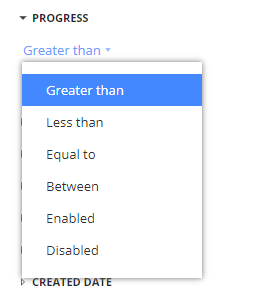 Now you can filter projects by project progress percentage on dashboard widgets and Reports.