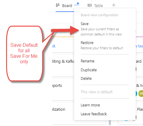 While the ability to create and save views is great - different teams might need different views on Boards, Tables, Gantt etc. … can you add an option that allows a view to be saved only for the logged on user?