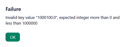 このエラーは、Key 列に入力された値が 1,000,000 以上の場合に発生します。 すべてのキー値が 999,999 を超えないようにしてください。