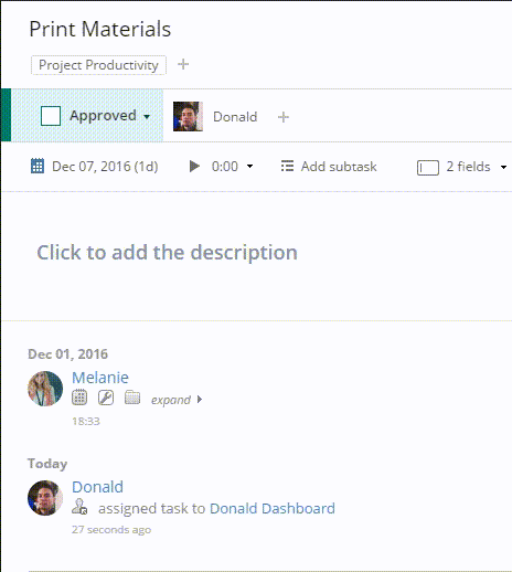 Wrike treats every single task individually and allows to add one time entry at a time, so that users could easily keep track of working hours as soon as they’ve finished working on a task.