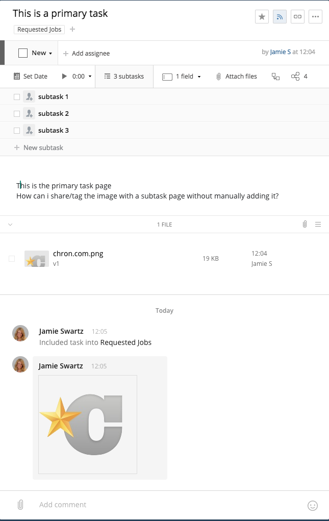 Is there a way to host all of the assets either on the Primary Task page and share them with a subtask?