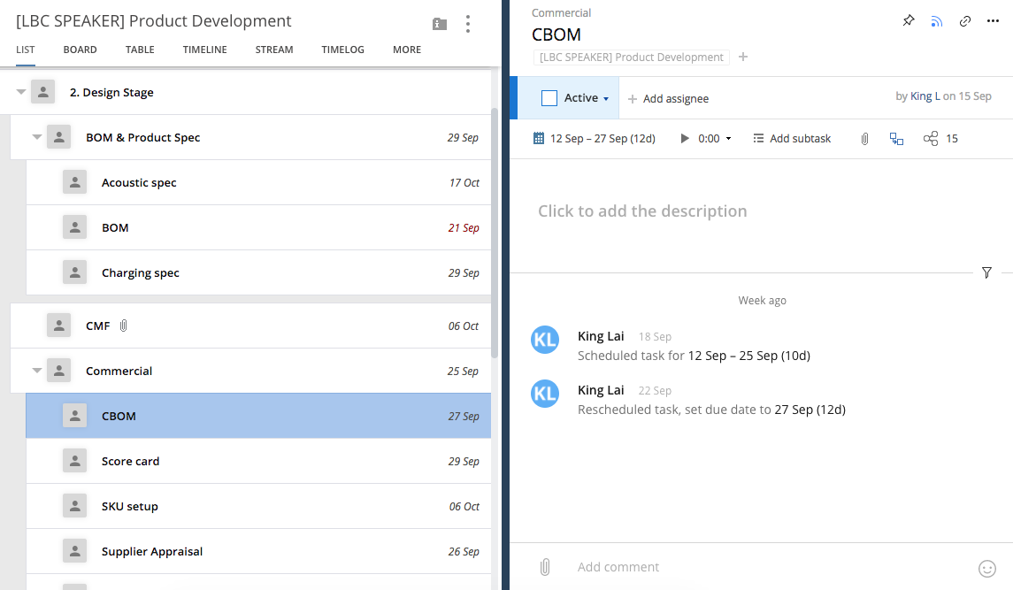 Folllowing List for Post: Task dates