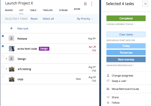 You can also use Mass Editing to ask multiple tasks to a Project at the same time: