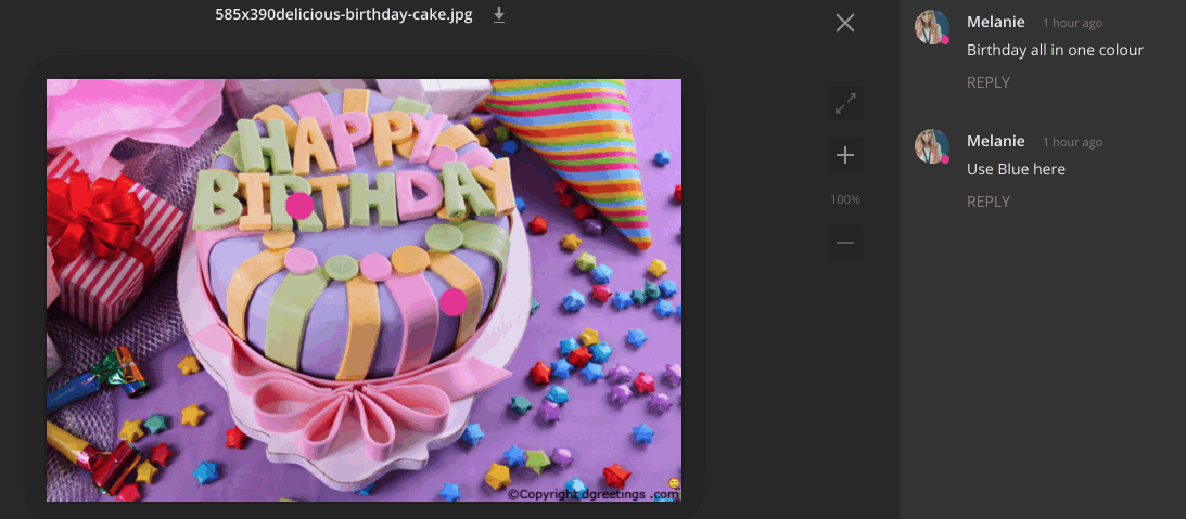 Hi Kelli, thanks for your post. You should be able to click on the dot on the image file where a comment has been added and it will highlight the comment in the panel on the lefthand side. See the GIF I've created below. Please let me know if I've misunderstood the issue here.
