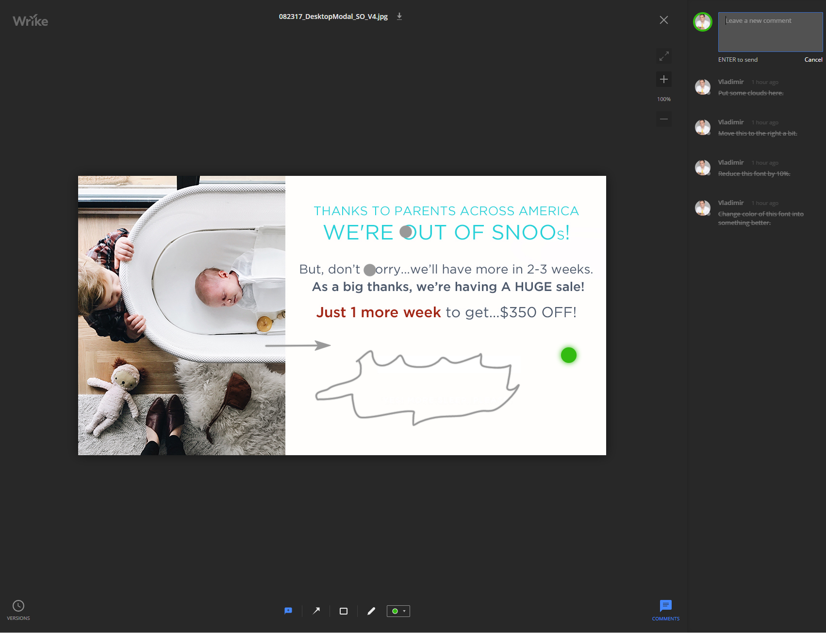 I know from your help articles that collaborators can comment on tasks and that I can have an unlimited number of collaborators without extra cost. I would like to know if collaborators can make visual comments to .jpg files as you see below. I like this functionality as this allows us to send files to our clients who can comment on them. If collaborators can make visual comments in section below - how do they do it? Do I have to make each client (collaborator) create their own Wrike account and they must log in each time?