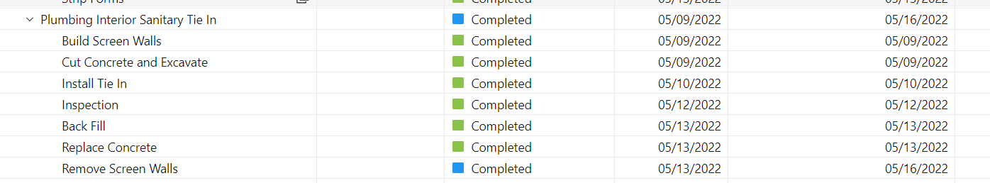 I am updating schedule. As shown in screenshot below, why the parent task and one of its sub tasks show in blue, other sub tasks are in green?
