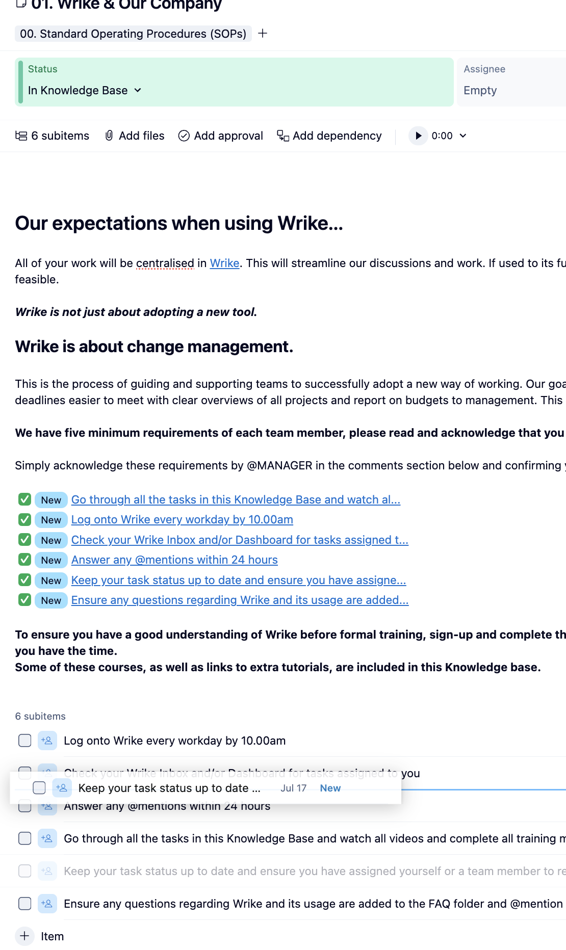 I will note that you CAN rearrange the Subtasks when you're in a Ticket View. We have this set for our Blueprints in the order the tasks are typically tackled and it works for that purpose. Here's a quick screen grab (using a Wrike Knowledge Base Template they offer). You can see various ways here - the Folder at the top starting with 00.SOP, the checklist option (which will keep everything in order, but only show in the field description) or you can drag/drop to reorder the subtasks (I took the screenshot as I was moving it to show how it will stay).