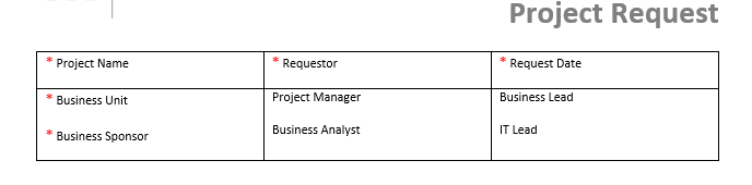 Request Form needs to have Table Looking Field some Dynamic and some user Input.