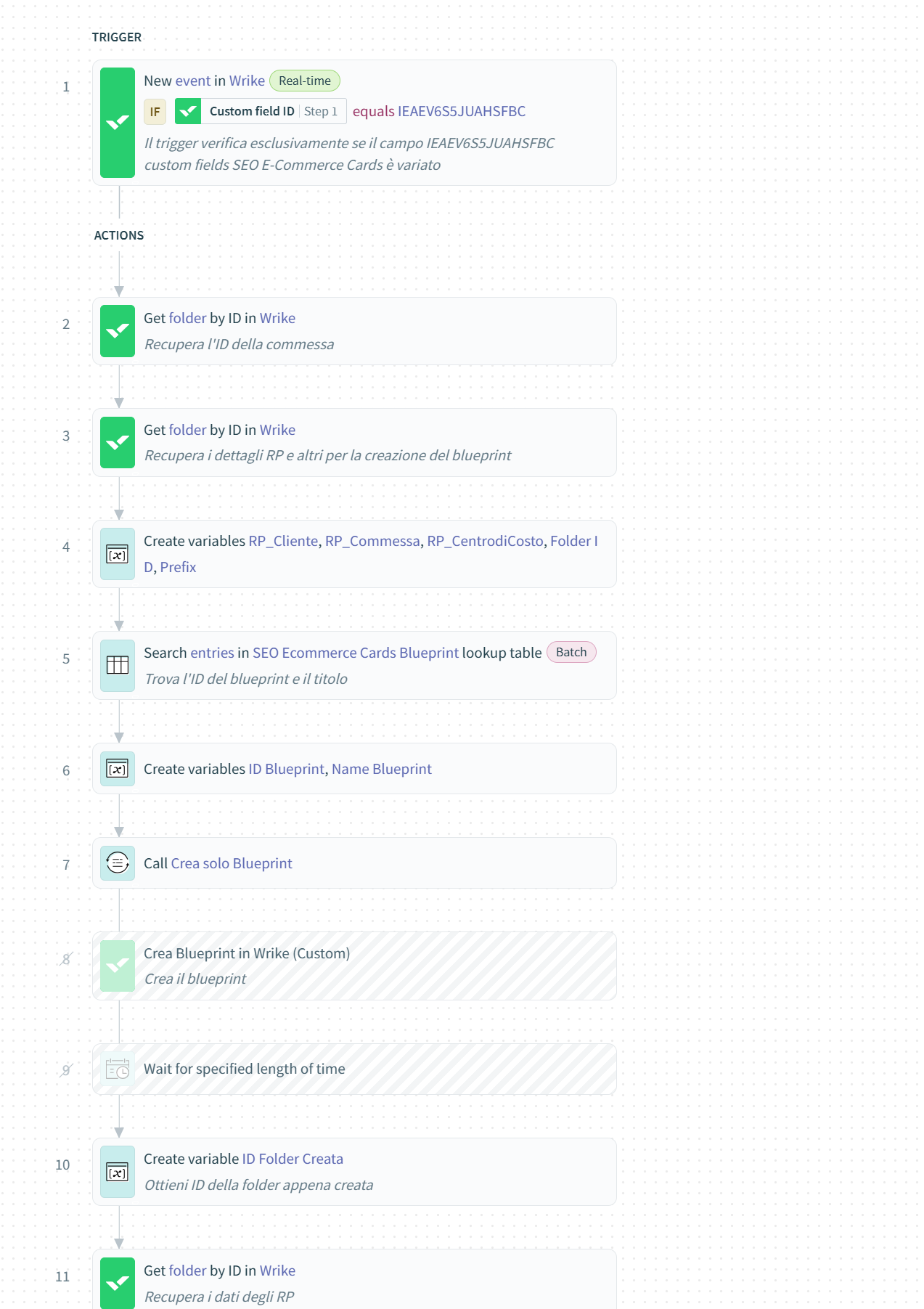 Automatically, with Wrike Integrate, I can create inside a project using a folder blueprint defined in advance.