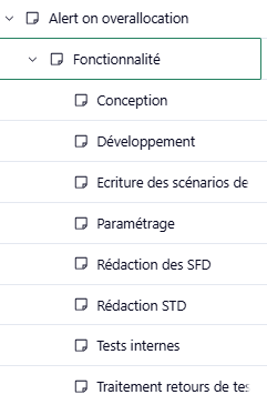 the activities below Fonctionnalitè task are always the same?
