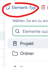 You have to select the item by clicking on the checkbox in the first column. Then you can use the "Element-type" button in the top of the table view.