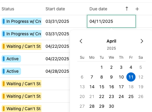 Lisa Thanks for the response! I have a related question. If I disable the Start Date column, I can't figure out an intuitive way to add the start date to the task, as I'm not able to do it from the Due Date column. Previously with List View, we could set the duration of the task from start to finish, and still just see the due date. I see that there's a column option for this anymore, and it seems like now with Table View I would have to click into each individual task (View Details) to access that same functionality if we disable the Start Date column.ย