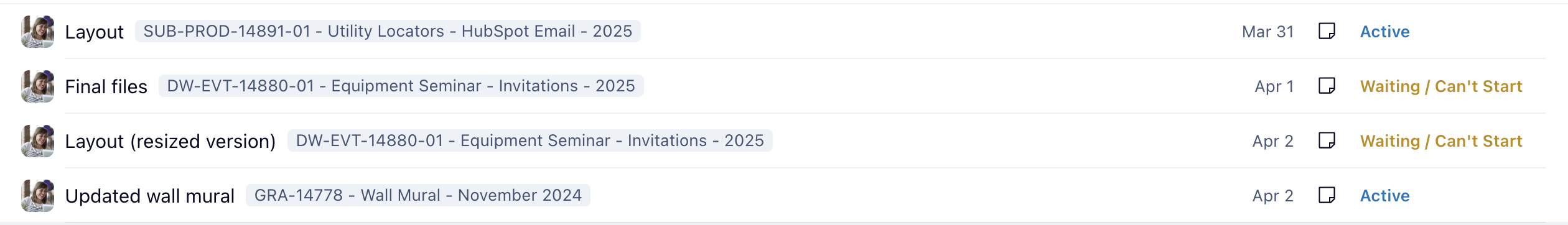- Interactive Files column: allows to work with files right from the view: preview, download/upload, proof.