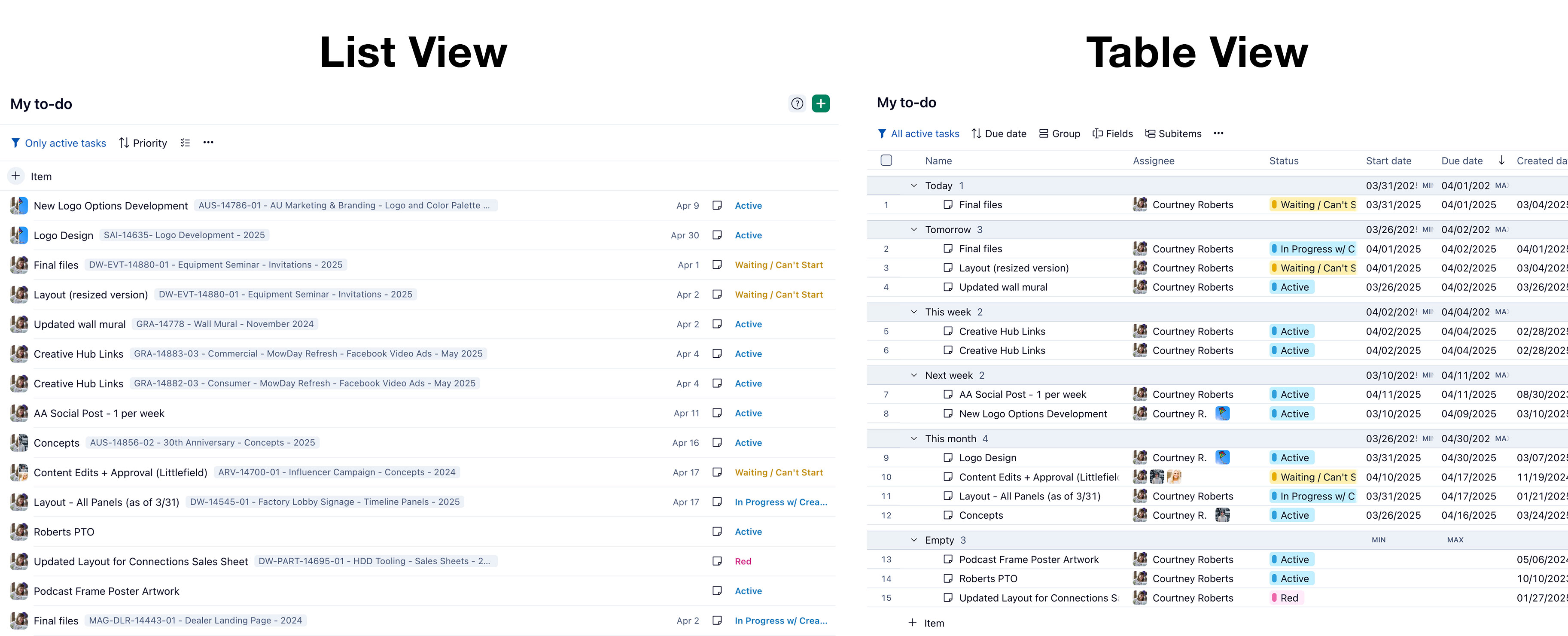 Our team works with the "Info" window slid open 99% of the time. With List View, we're still able to see all tasks, assignees, status and due dates with the Info window open, but the same is not the case with Table View. There's so much wasted space for us in Table View: a dedicated assignee column vs the icon next to the task in List View, requiring two columns for Start and Due date to schedule a task, not being able to shrink columns as much as we need to.... just clunky.ย