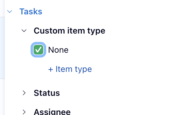 You can filter them in "Custom item type" and select "None". That should hide all tasks.