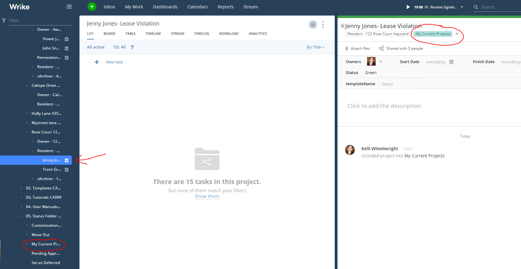 I don't suppose you can apply a rule or something to a folder that says "Include every project/task assigned to Corey"? I don't trust myself to remember to add the folder every time ;)