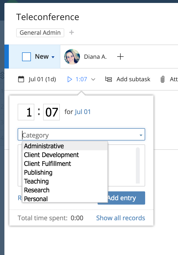 Understood completely and it is what I am toying with now. I do think it comes down to the company and how your work days are. For example, if one of my employees is working on a task and gets a call from a customer/ adhoc meeting they then stop their time, create a subtask documenting what they are now working on, and restarting the clock on that subtime. That way we went from tracking 1 thing, to 3 things to get a better knowledge of our staffs workflow and how we can better understand the process or process failures.