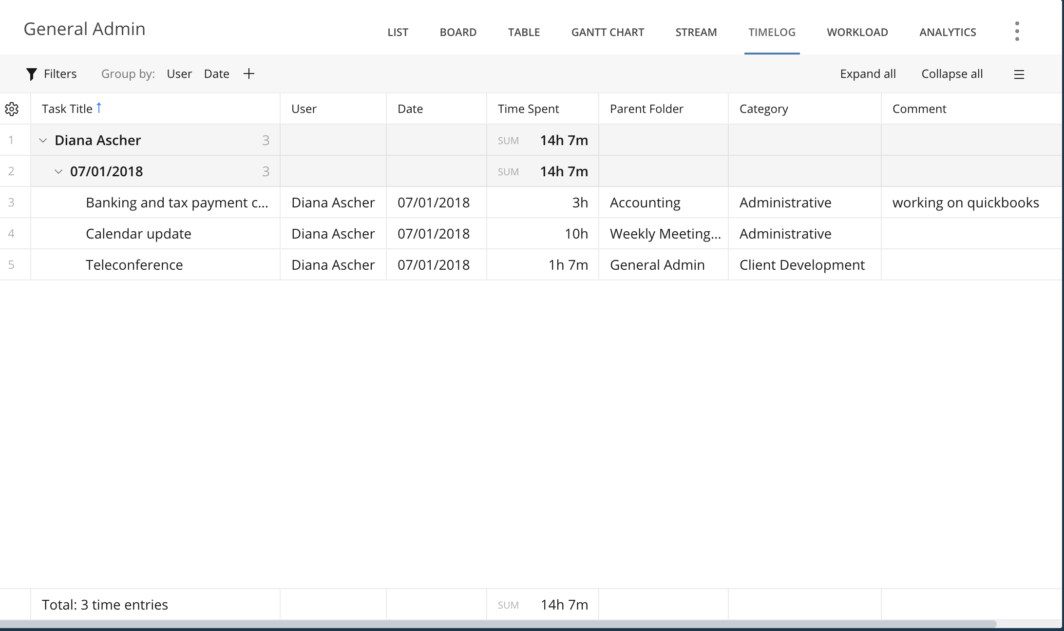 We need to be able to extract a record where we can see a timeline where employees, tasks and time used in each is present.
