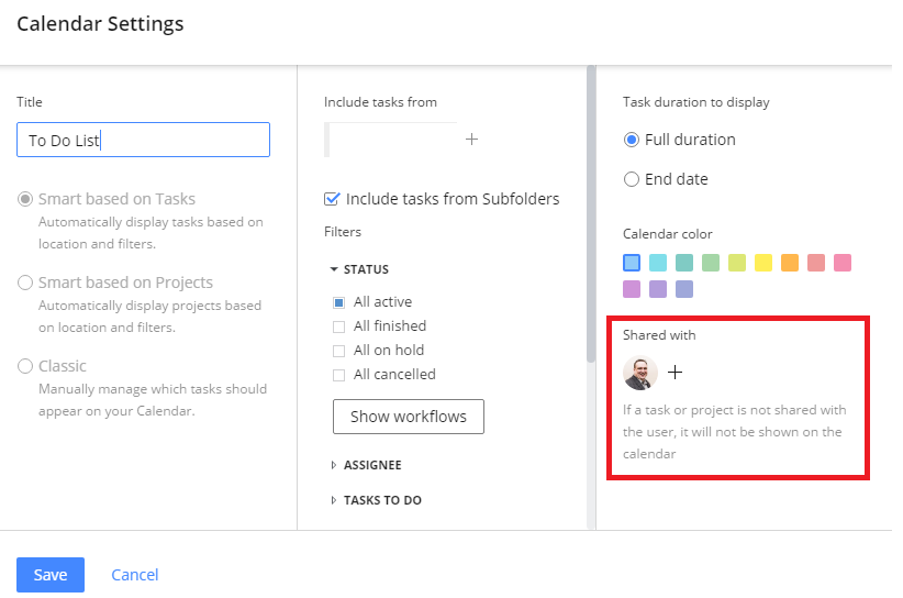 Folllowing List for Post: Unable to select a shared calendar for a task