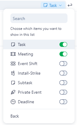 1. Can the order of the item types be changed in the menus? It seems that they can only appear in the order they were created. Am I missing a setting where that sequence can be changed? In the screen shots below, I have the dropdowns for both a custom item that has a restricted list of items available, and in the second image, the toggle list is visible on a standard task. It would be great to have a way to change the sequence in which these will appear, either globally or (even better) on each custom item type.
