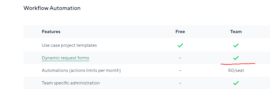 I've checked the availability and the messaging with our internal team. Request forms are available for Team plan, and we're going to review the resources to make sure this isn't confusing. Thanks again for noting that!
