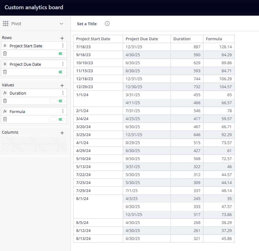 I got it to work in analytics, board and formulas below.