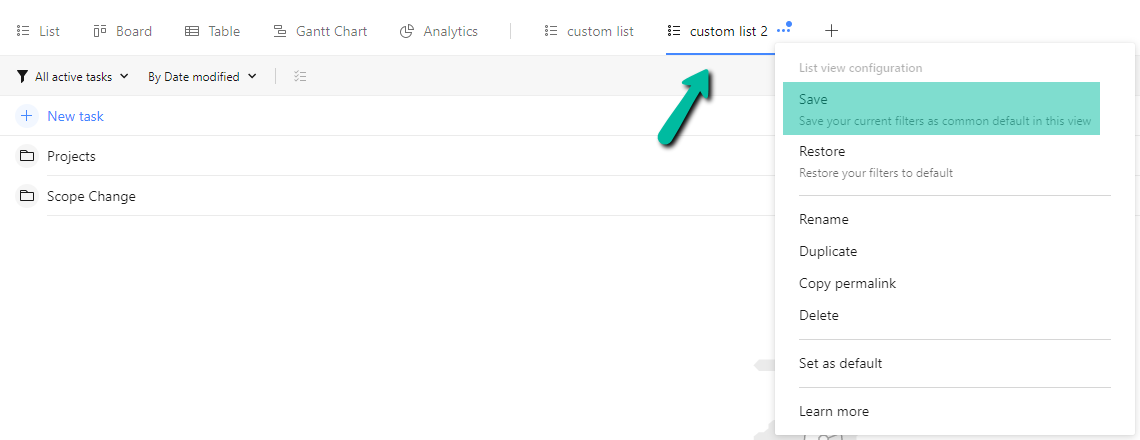 Lisaย I just tried this today because this is exactly what I was looking for. I was able to set the default view to a new Custom View I created, but when I apply filters and columns I want shown and sorting, I don't think it is letting me save out those changes. I followed the link to the WRIKE views tutorial you shared, and I can't find the "save" function in the three dots next to the title of my view to save out all the customizations I made.