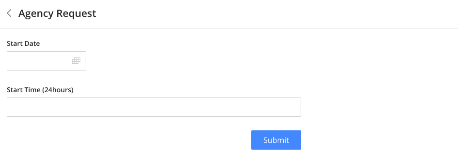 Currently, you can only add the date field on your Request forms, but not the start time in hours and minutes. It's a good idea so I'll move this post to the Product Feedback section so any other members looking for a similar feature can vote it. This way our Product Team will be made aware of the suggestion too.