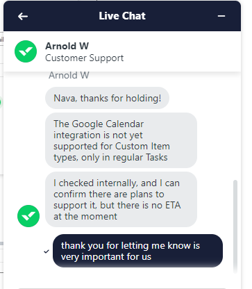 Custom Item Types are not available on Google Calendars