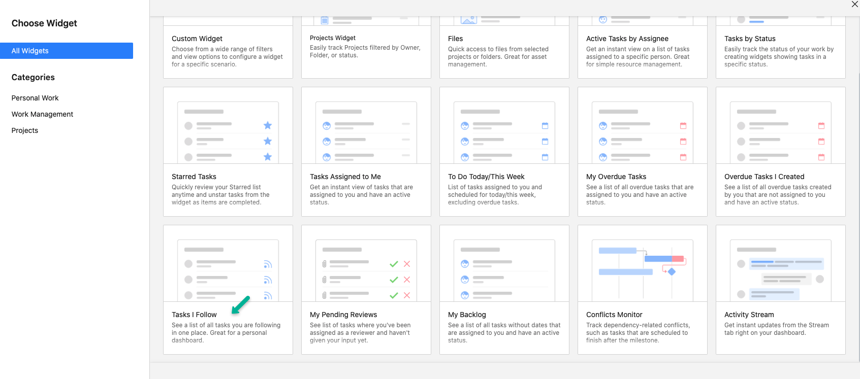 We have a default widget that you can use specifically for that called Tasks I Follow.