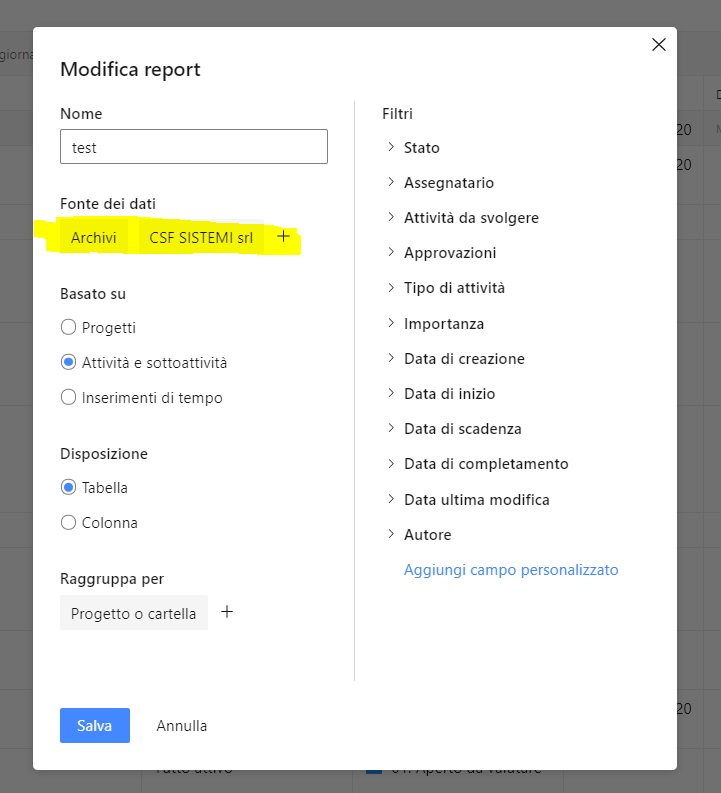 "Archivi" and "CSF SISTEMI srl" are in OR condition. I would like it to be in AND condition.