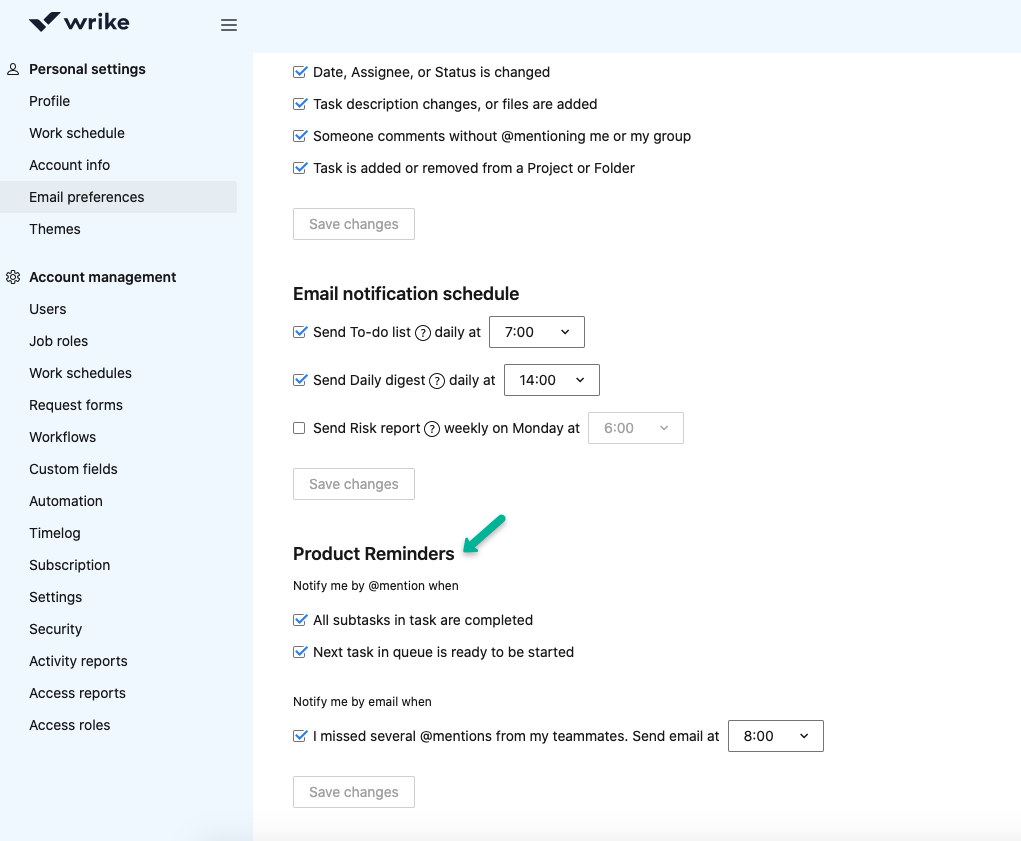 So I want to get notifications in my Wrike Inbox so I can open it and see what came the last few hours. Thats fine and necessary. But I do not want that Wrike shows me that immediately via the task symbol or in Wrike in the letter symbol. This means it attracts my attention and disturbs my work (for which it should support me).