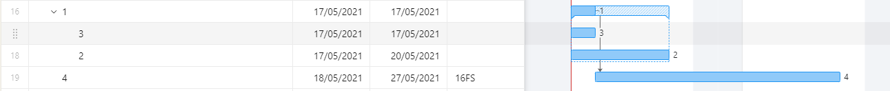 When I have two main tasks. Let's say task 1 and task 4. Task 1 has two sub-tasks, task 2 and task 3.