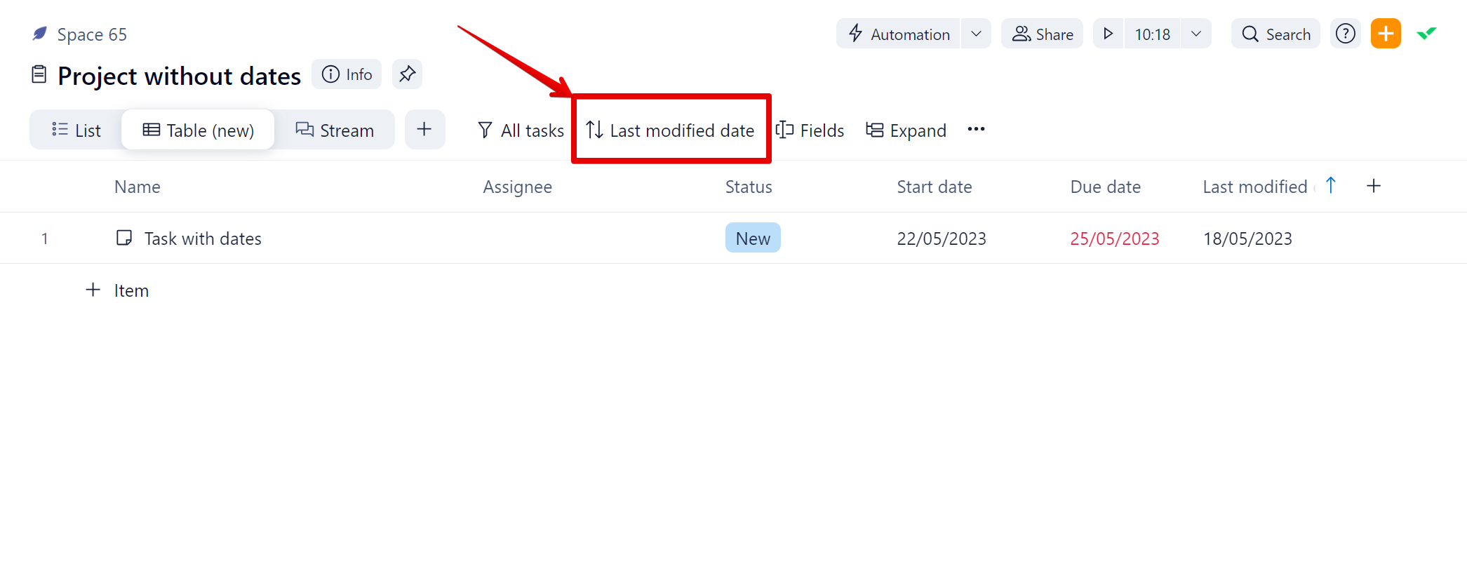 There is option to sort tasks based on name, Assignee, priority etc in Wrike. But there is no option to sort based on last update.