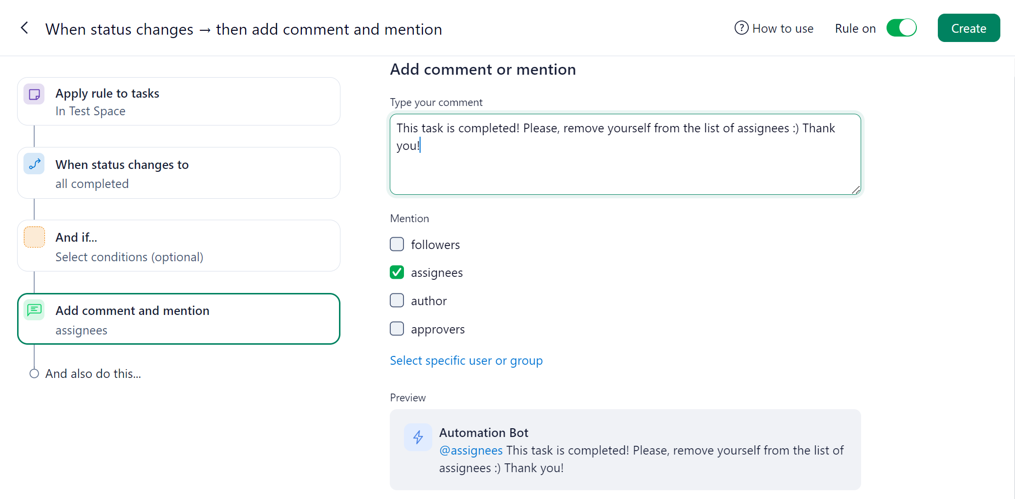Automation to unassign a user from tasks/projects/folders