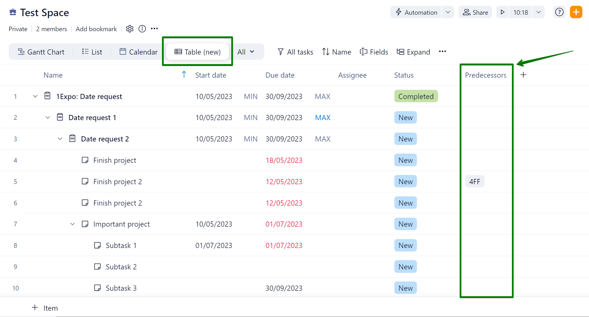 However when I view that task in table or gantt view the predecessors column does not show any value there - its misleading (because there really is a link there)