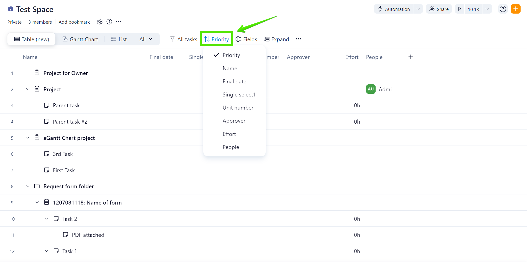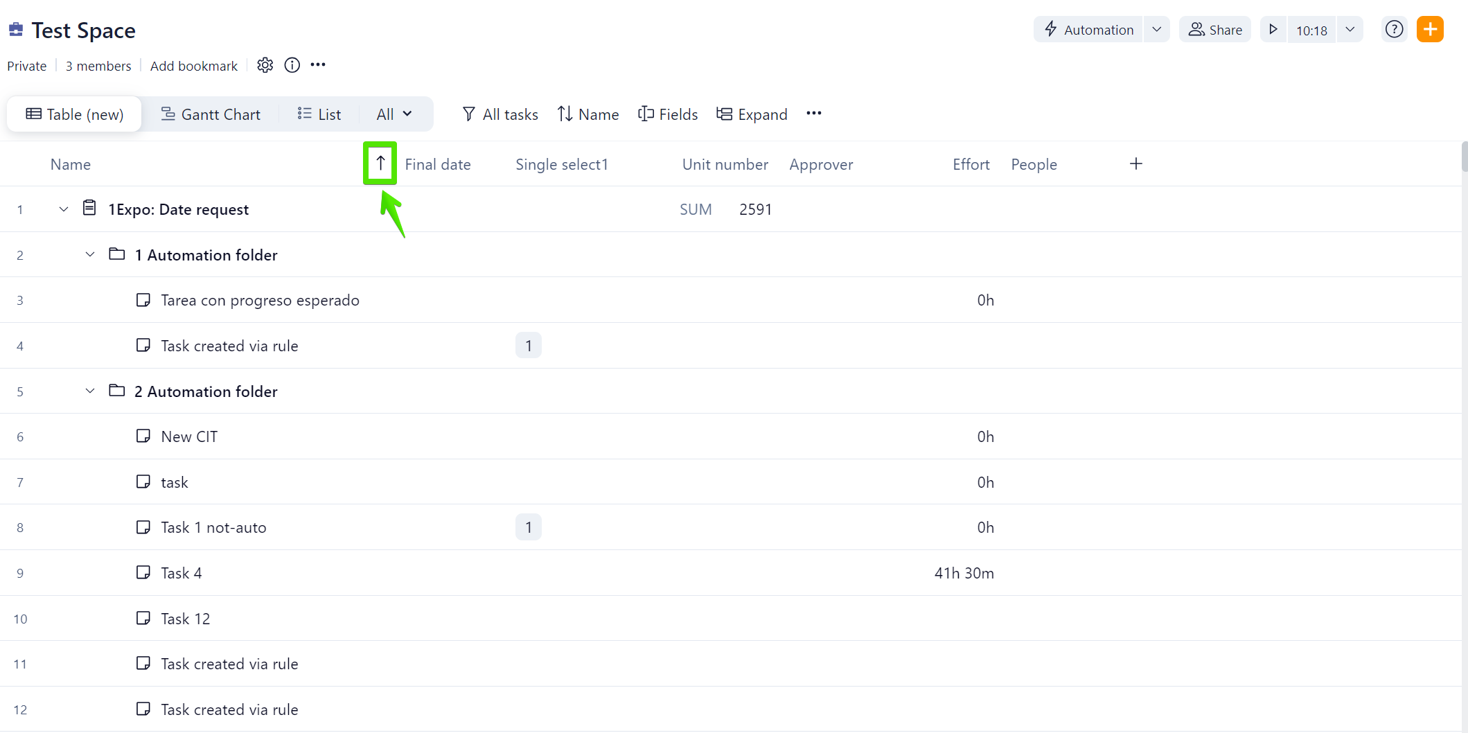 Hi Steven Valinski, welcome to the Community! You have several different sorting options in the New Table view. It seems that you are sorting your tasks by title, is this correct? You can sort your tasks by basically any column displayed in the view: